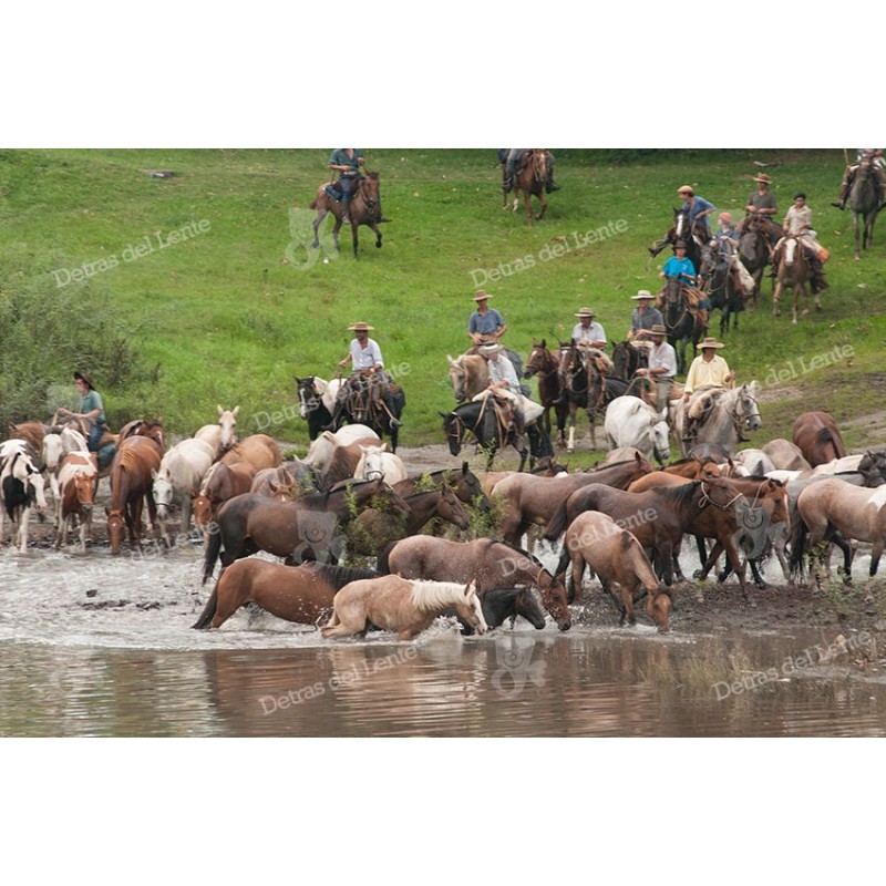 Arreando caballos en el tajamarRecipiente :